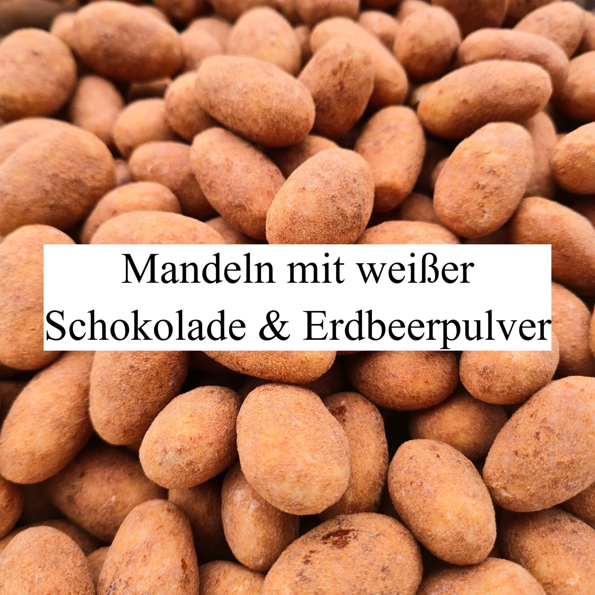 Mandeln mit weißer Schokolade und Erdbeerpulver